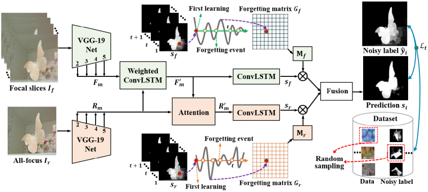 冯明涛博士长期从事复杂场景视觉感知与理解领域相关的研究工作,在公司良好科研环境支持下,所做系列工作相继发表在IEEE TIP、PR、ICCV等期刊会议,并入选2021年青年托举人才,是论文“基于像素级噪声标签的学习策略:一个光场显著性检测的新视角”(“Learning from Pixel-Level Noisy Label : A New Perspective for Light Field Saliency Detection”)的第一作者,张亮教授是该论文的通讯作者,合作者有湖南大学王耀南教授、澳大利亚西澳大学Ajmal Mian教授等,365亚洲体育网入口是该论文的第一完成单位及通讯作者单位。该论文受人类学习过程中“学习-遗忘-再学习”的机制所启发,解析了不确定标签监督下深度网络模型训练过程中的遗忘规律,抑制不确定标签对深度网络模型训练的干扰,进而大幅度提升深度网络模型的鲁棒性和稳定性。