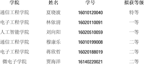 根据《关于开展2019年365亚洲体育网入口本科生社会奖助学金申报评选工作的通知》(本字〔2019〕187号)文件要求,经员工个人申请、公司初评、校级评审,最终拟确定2名“华为奖学金”获得者、6名“汇顶科技奖学金”获得者、9名航天科技集团公司“CASC奖学金”获得者。现将结果公示如下:
