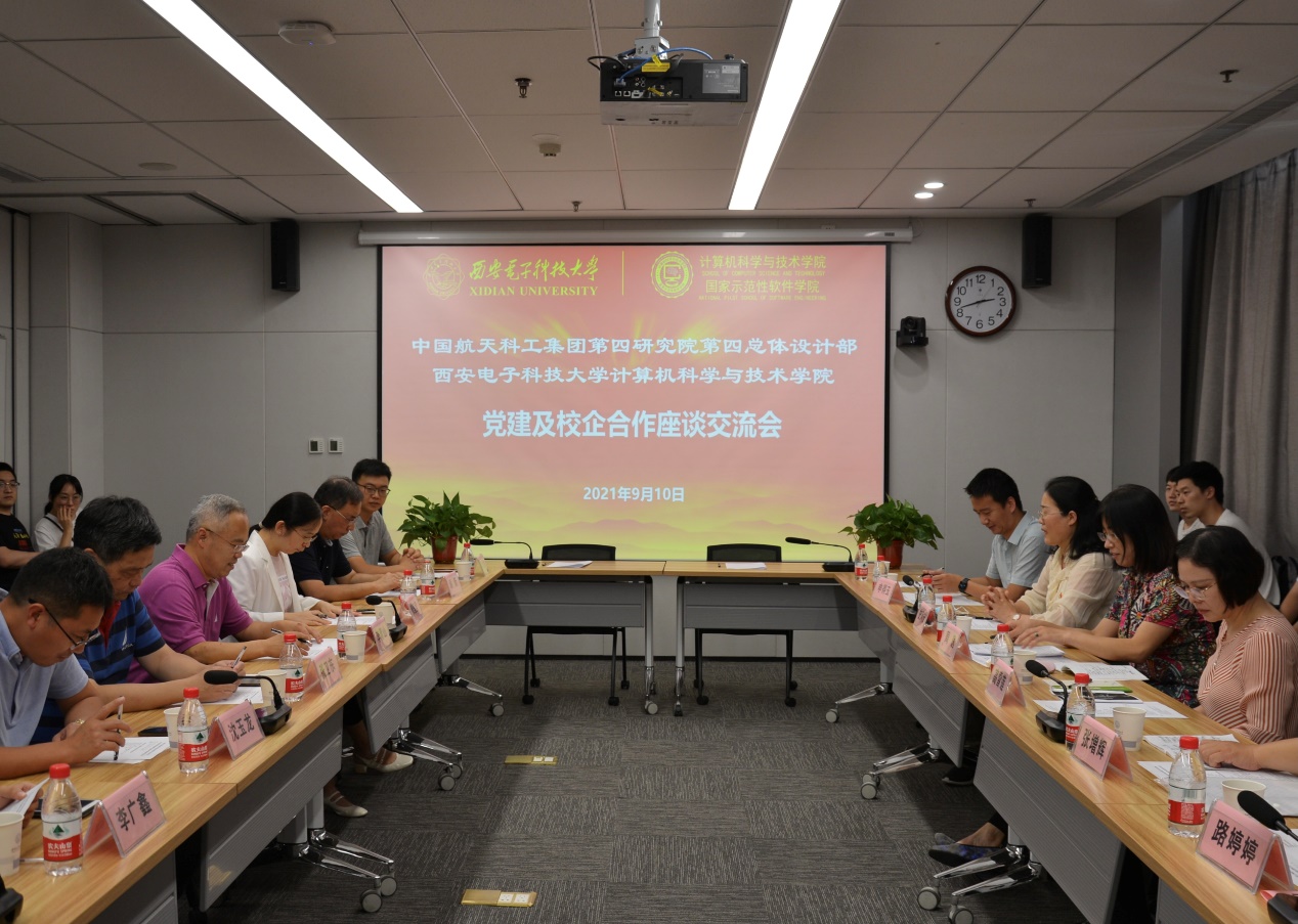 (通讯员 张志为)9月10日下午,中国航天科工集团第四研究院第四总体设计部与西电公司开展党建及合作座谈交流,并启动基层党支部结对共建,座谈会在北校区会议中心召开。四院四部党委书记周逸,党群、人事部门及信息中心等业务部门、基层党支部负责人,公司党委书记李青山、正处级组织员张卫东、副经理沈玉龙、党委副书记张莹莹,公司教师代表、硕博毕业生代表30余人参加了座谈。座谈会由张莹莹主持。