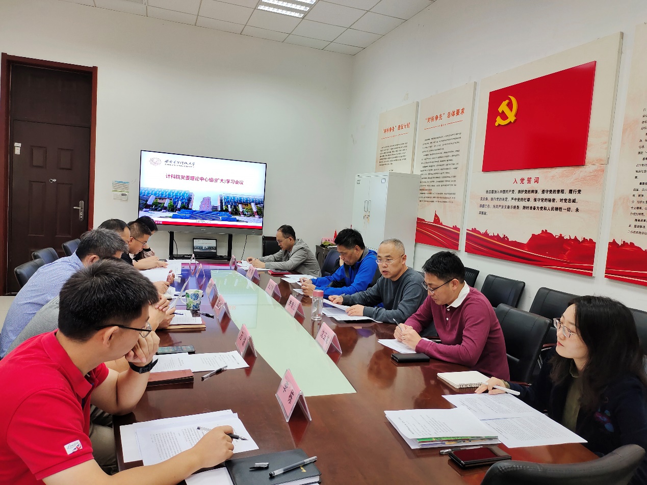 (通讯员 同榛)8月31日上午,计算机科学与技术公司党委在北校区主楼四区107会议室召开党委理论中心组(扩大)学习会议。公司班子成员、两委委员、教职工党支部书记和团委书记参加了集体学习,会议由公司党委书记李青山主持。