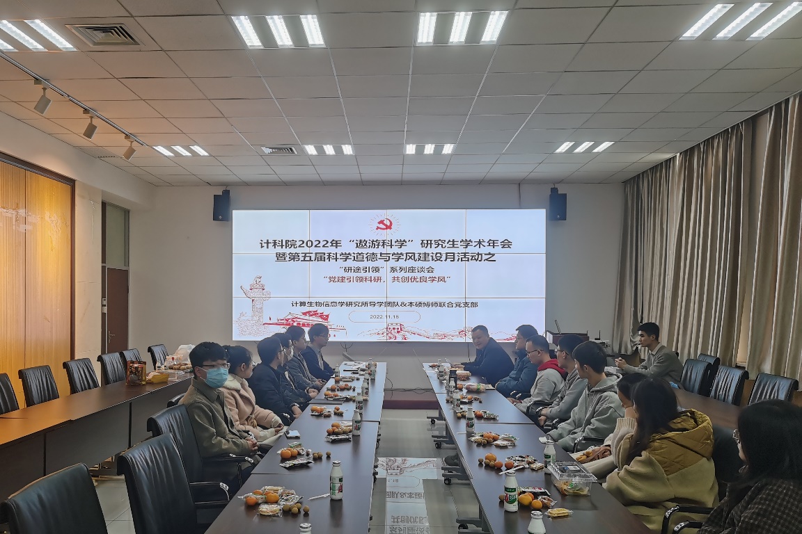(通讯员 张明婕)11月18日下午,365best体育官网登录计算生物信息学研究所本硕博师联合党支部在主楼Ⅱ区319会议室,举办了2022年“遨游科学”研究生学术年会暨第五届“科学道德与学风建设月”活动之“研途引领”座谈会,座谈会以“党建引领科研,共创优良学风”为主题,旨在通过开展科研经验、学术成长等方面的交流分享,促进师生传帮带,共谈学术规范,树立科研风范,弘扬优良学风。