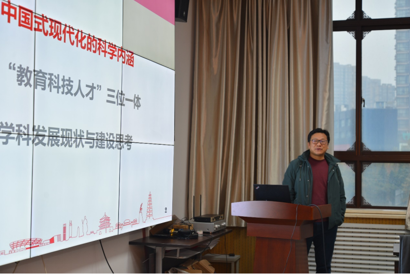 校发展规划部部长邓成做《中国式现代化视域下的西电团队建设》专题宣讲。习近平总书记在党的二十大报告中强调,以中国式现代化全面推进中华民族伟大复兴。党的二十大报告首次将教育科技人才一体部署。结合学习贯彻党的二十大精神,邓成解读了加快推进教育现代化对助力中国式现代化提供的基础性和战略性支撑作用,并从服务中华民族伟大复兴的战略全局和服务世界百年未有之大变局的角度,分析了高校在服务科教兴国战略、创新驱动发展战略和人才强国战略中的地位和作用。结合新一轮“双一流”建设学科布局和西电“十四五”规划目标,在分析公司学科现状以及面临的形势和任务的基础上,邓成介绍了公司团队建设的思路与实践路径,以计算机科学与技术学科为例,从学科发展布局、标志性成果培育和人才引育等方面提出学科发展对策和建议。