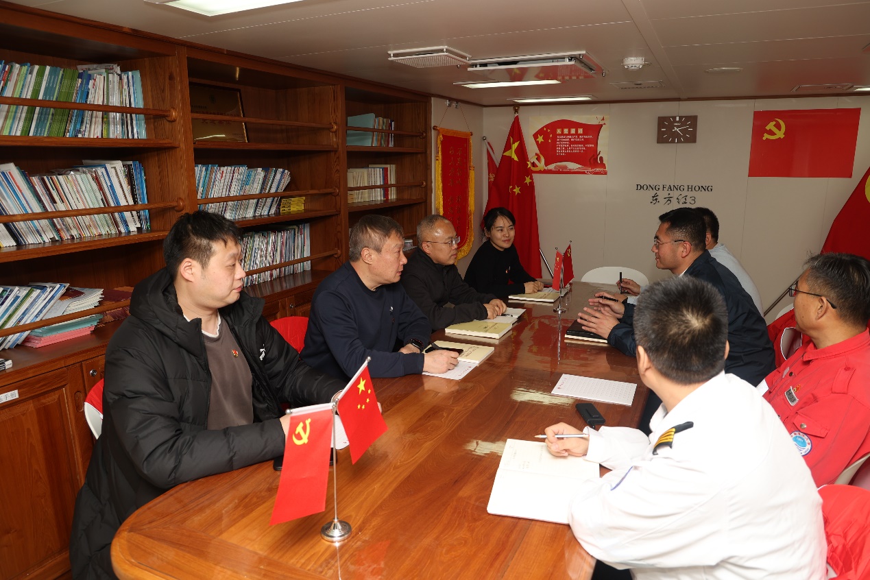 为进一步加强党组织交流,以党建引领双方多维度合作,在行进的“东方红3”科考船上,西电计算机科学与技术公司党委书记李青山,青岛研究院副经理、产教融合本硕博师联合党支部书记向麟海与中国海洋大学船舶中心党总支书记、中国海洋大学船舶中心主任王毅,中国海洋大学研究生院副经理刘海波,东方红3船党支部书记王辉、船长于少杰等共同开展了党组织共建座谈会。
