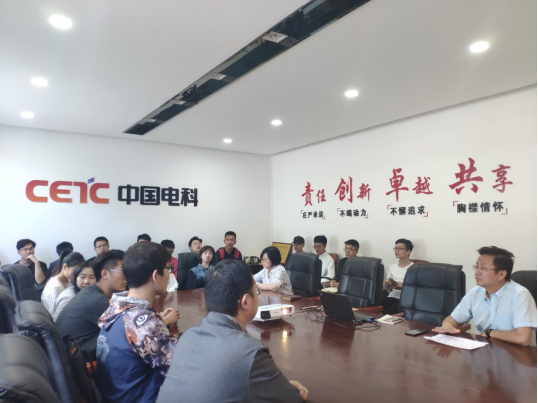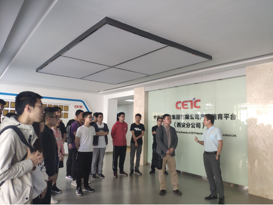 此次交流活动是两支部系列交流活动的开端。活动一开始,中电科西北集团西安分公司党支部书记李卫飞同志向软件工程系本硕博师联合党支部全体党员介绍了中电科西北集团发展历程和企业概况,随后带领大家参观了公司产品展厅。