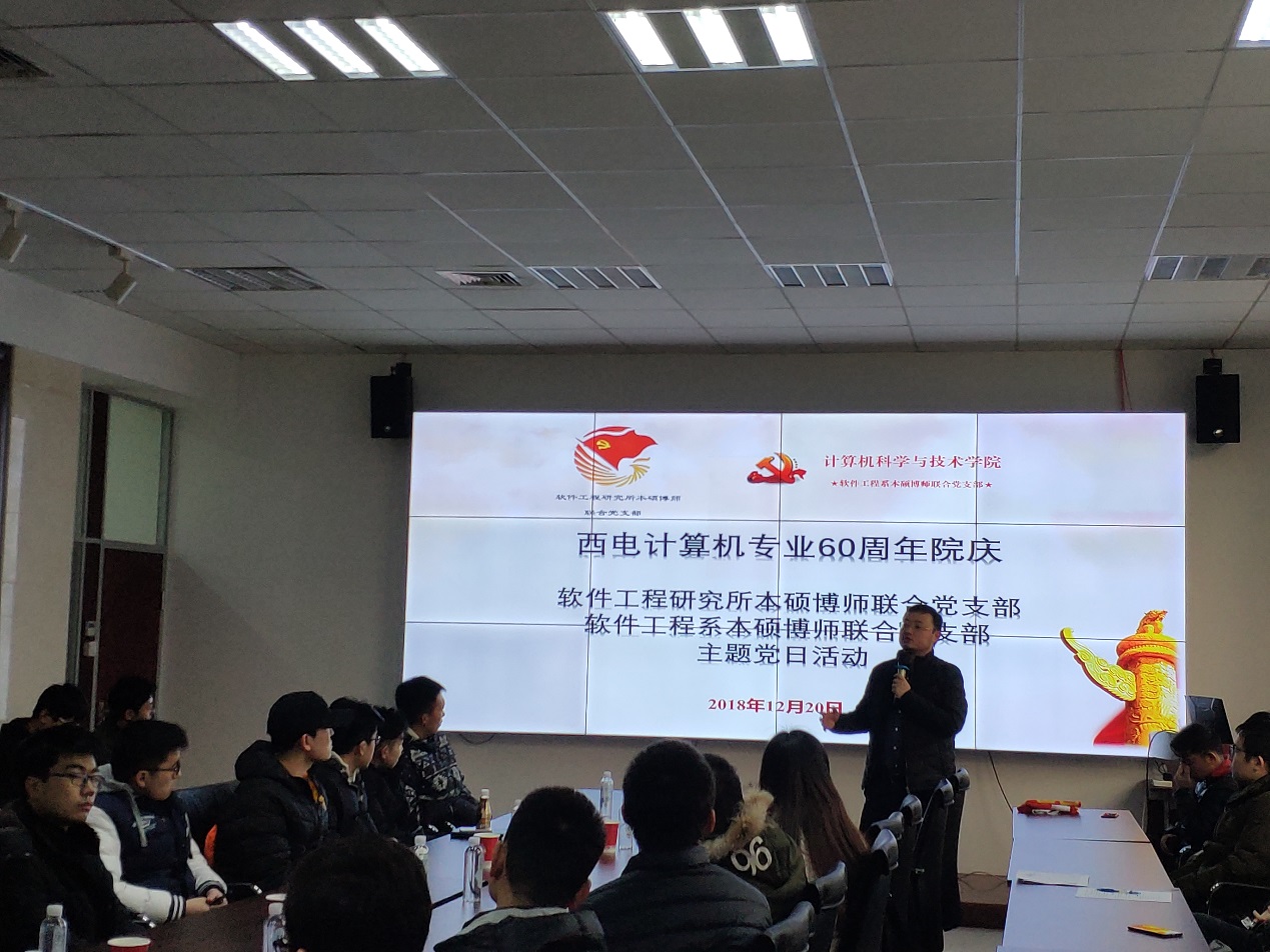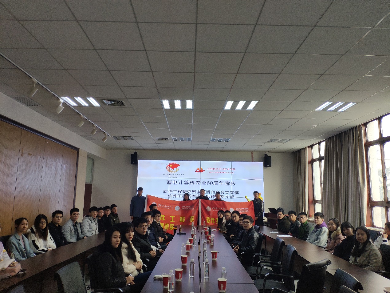 (通讯员:赵海洋 田文生)12月20日,值此西电计算机建专业60周年之际,软件工程研究所本硕博师联合党支部和软件工程系本硕博师联合党支部,联合开展“西电计算机专业60周年院庆”主题党日活动。本次活动主要回顾了365best体育官网登录建专业60周年以及软件工程发展50年历程,解读了国家软件发展战略、国家软件人才需求情况和西电软件工程专业的发展状况;王璐博士与师弟师妹们就大家关心的奖助体系和培养体系进行了介绍。会议也积极讨论了关于支部建设和党组织活动开展的重要事项。会议由软件工程系本硕博师联合党支部书记李瑞老师主持。