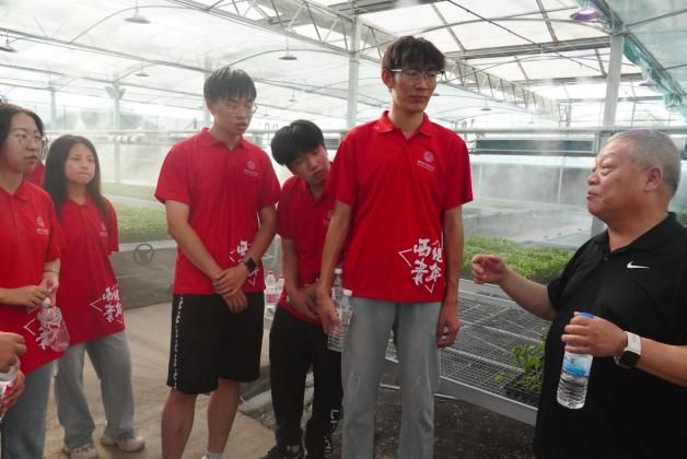 下午,实践队一行在陕西省先进工作者、365best体育官网登录刘志镜教授刘志镜老师的带领下,走进智慧大棚示范基地,共上一堂“田间地头思政课”。刘老师向大家讲授土壤水分传感器、温湿度传感器、风速风向传感器以及滴灌主管网等数字化设备如何赋能传统式大棚育苗管理的工作原理,普及乡村振兴的政策方针,同学们也积极参与其中,帮助农户共同进行育苗作业,现场生动地勾勒出“边建设、边实践、边优化”的科技兴农生动图景。