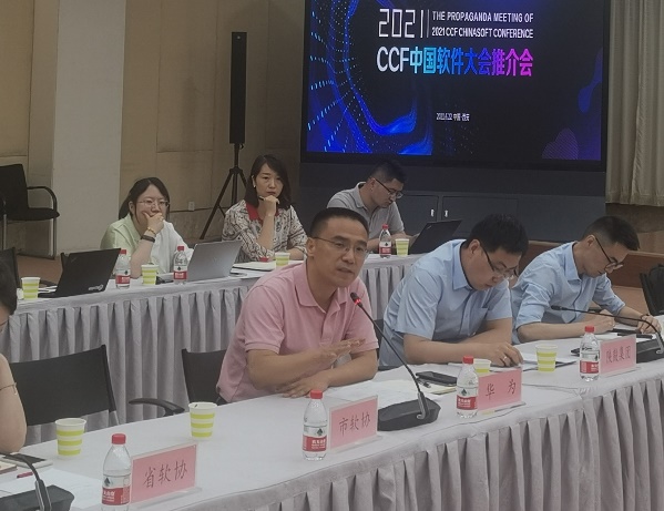 大会程序委员会主席、组织委员会主席李青山首先从大会简介、筹备历程、举办方案、内容规划、协同体系、待议内容等六个方面详细介绍了大会的情况。CCF中国软件大会已成功举办十九届,现已成为中国软件界的年度盛会。2021 CCF中国软件大会由CCF软件工程专委会、CCF系统软件专委会、CCF形式化方法专委会、365亚洲体育网入口共同承办,西安市高新区管委会等作为支持单位,预计将吸引软件领域学术界、工业界、教育界超过2000名代表参会,将继续成为软件及相关领域行业学术分享、技术探索、教育研讨、团队建设、人才培养等方面一年一度全国性的综合交流与促进平台。在协同办会体系部分,李青山诚挚地邀请高新区的相关企业、协会以协办单位、支持单位或者赞助商的角色参与大会筹办,以此为契机深度参与全国软件领域学术、技术、人才的交流。李青山还重点向推介会参会代表介绍了正在策划中的大会会前预热活动,包括软件专家走进企业、软件企业走进高校、政用产学研合作交流论坛,中国软件开源创新大赛等赛事,希望高新区软件企业可以积极参与以上活动,持续融入大会筹办过程。