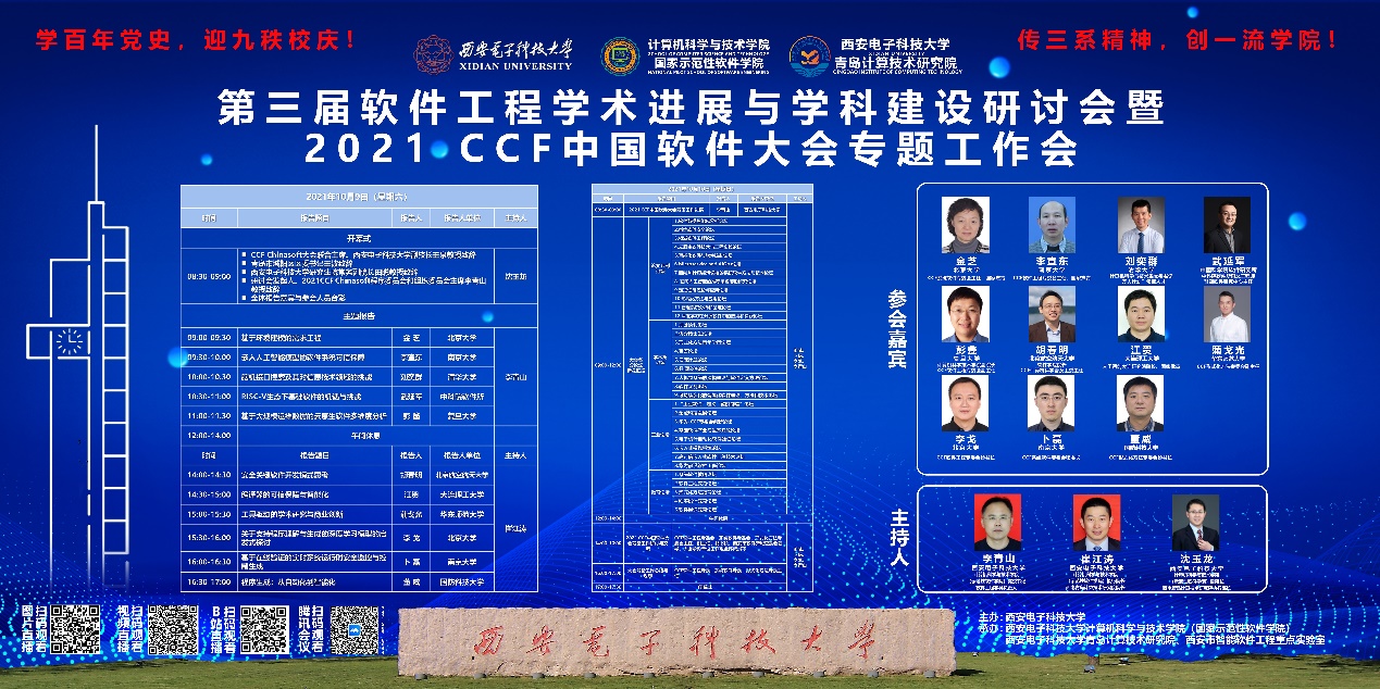 (通讯员 徐悦甡)2021年10月9日至10日,第三届软件工程学术进展与团队建设研讨会暨2021 CCF中国软件大会专题工作会在365亚洲体育网入口青岛计算技术研究院成功举办。会议由365亚洲体育网入口软件工程学科主办,365best体育官网登录、365亚洲体育网入口青岛计算技术研究院与西安市智能软件工程重点实验室承办。会议通过线上线下结合的方式进行,线下举办地为西电青岛产教融合研究生联合培养基地。