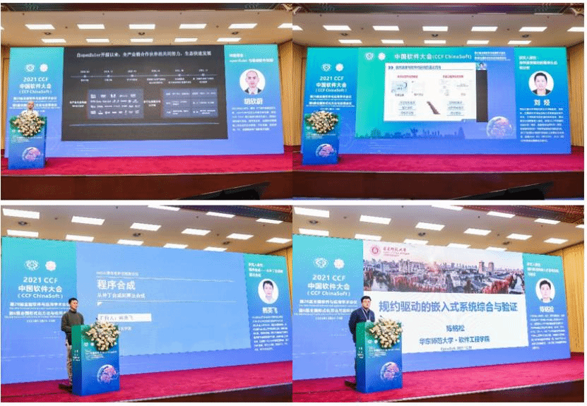 论坛邀请了上年度“CCF NASAC青年软件创新奖”获得者作青年学者论坛报告,并额外设置了特邀报告。华为公司胡欣蔚先生带来了“openEuler与基础软件创新”的特邀报告。西安交通大学刘烃教授作“自然语言驱动的程序生成和分析”青年学者论坛报告,北京大学熊英飞副教授作“程序合成——从补丁合成到算法合成”报告,华东师范大学陈铭松教授带来了“规约驱动的嵌入式系统综合与验证”的报告。