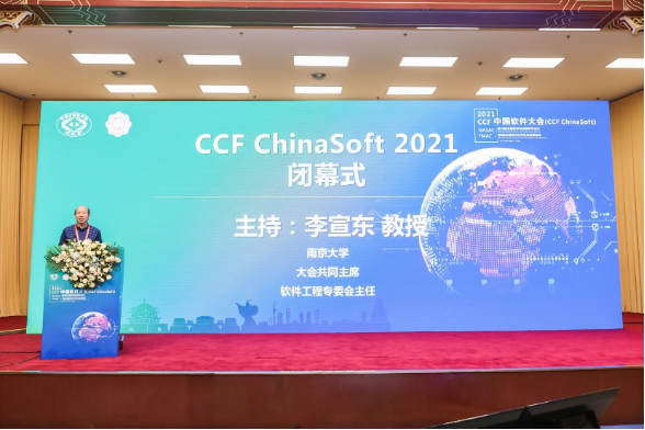 大会闭幕式由大会共同主席、CCF软件工程专委会主任李宣东教授主持。各类型优秀论坛奖由北京大学谢涛教授、复旦大学彭鑫教授、中科院软件所詹乃军研究员宣读并颁奖,最佳学术论坛是软件数据智能化分析论坛、系统软件安全论坛、形式化方法与应用论坛以及云原生软件技术与工程实践论坛,最佳工业论坛是高可信嵌入式软件工程技术论坛与“工业软件”定义“智能制造”论坛,最佳教育论坛是系统软件教研论坛与软件实践教学论坛,最佳人气论坛是顶会顶刊论坛与优秀博士生论坛。
