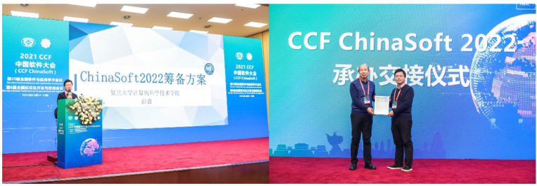 下一届CCF中国软件大会承办方代表,复旦大学计算机科学技术公司副经理彭鑫教授代表承办方进行承办方案宣讲,并与本届大会承办方365亚洲体育网入口举行了承办交接仪式。