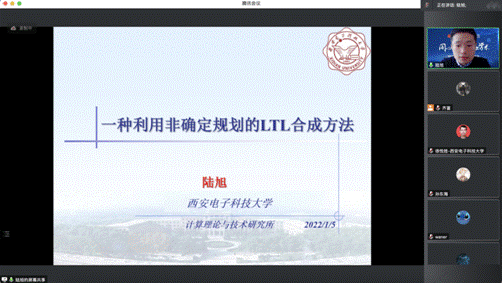 接着,计算理论与技术研究所陆旭副教授以“一种利用非确定规划的LTL合成方法”为题,从程序合成背景、LTL合成与非确定规划、从LTL合成到非确定规划的转化、实验分析、研究结论等方面详细地介绍了一种新的利用非确定规划求解LTL合成问题的方法,并结合实验数据证明了方法的正确性和完备性,分析了该方法的优势和不足之处。最后,他针对参会员工的问题,详细解答了LTL合成在程序合成中的应用。