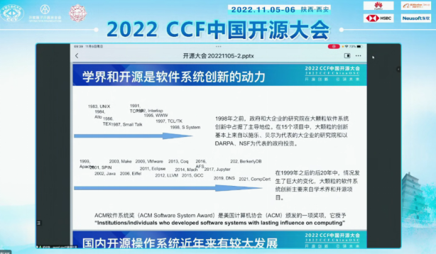 (通讯员 徐悦甡,崔笛,胡光能)经过了11月5日精彩的大会首日活动后,11月6日2022 CCF中国开源大会(CCFChinaOSC)继续在线召开,并继续提供腾讯会议、线上直播平台、B站直播间等多种参与方式。大会也继续得到了包括CSDN、SegmentFault思否、开源社等在内有关媒体的直播。6日大会同样吸引了开源领域国内外相关领域师生与同行的广泛参与,上午大会报告与高峰论坛等活动各媒体平台累计观看人数超过5万人次,下午分论坛各媒体平台累计观看人数超过11万人次,全天累计超过16万人次。