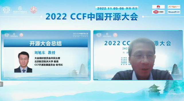 刘旭东代表开源发展委员会对大会进行了总结,首先感谢组委会与承办团队的辛勤付出,感谢各位论坛主席和报告人的贡献,感谢支持单位与赞助商对大会的支持,也感谢各位参会代表的积极参与以及广大开源领域师生同行对大会的关注。刘旭东谈到作为CCF开源发展委员会的首届大会,尽管受到疫情的影响转为线上举行,但论坛数量、参会人数、媒体数量等都超过了预期,一方面得益于主办方、专委会与承办团队密切协同、及时调整、周密准备,另一方面也是开源领域同行师生共同参与的结果。希望广大开源领域的各界同仁持续关注CCF开源发展委员会以及后续的各项活动,包括未来的中国开源大会。至此,首届CCF中国开源大会(CCFChinaOSC)圆满落幕,我们明年再见!