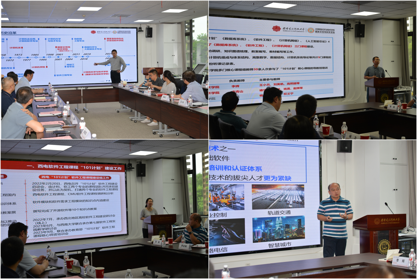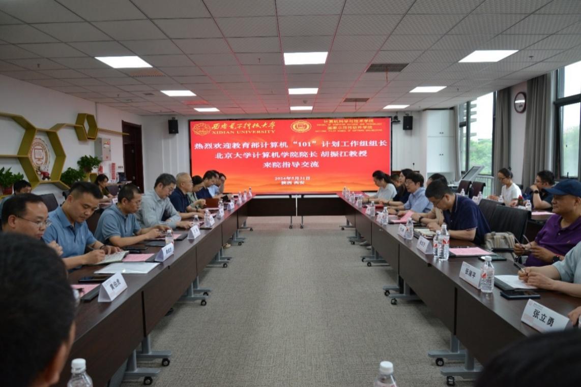 公司执行经理崔江涛从历史沿革、团队建设、团队队伍、人才培养、科学研究等方面对公司的建设发展情况进行了介绍;教学副经理万波介绍了公司参与 “101计划”工作情况和取得的建设成效;万波、褚华、李辉作为《程序设计基础》、《软件工程》和《数据库系统》三门核心课程的负责人,对课程建设情况进行了汇报。胡振江教授认真听取了汇报,肯定了公司的发展和课程体系建设成效,表示西电365best体育官网登录的人才培养很有特色,希望将来加强北大计算机公司与西电365best体育官网登录的交流学习。