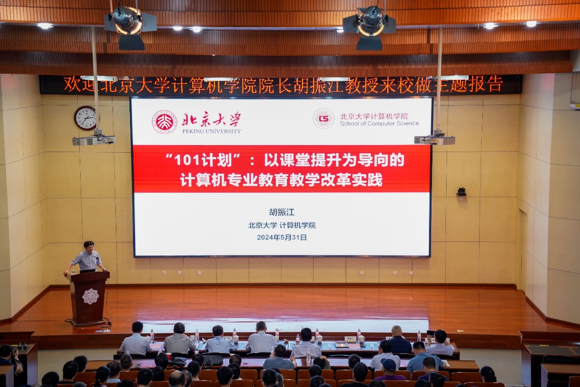 (通讯员 张亚菲)5月31日,应365best体育官网登录、本科生院、校人才工作办公室邀请,教育部计算机“101计划”工作组组长、北京大学计算机公司经理胡振江教授来校在南校区行政楼210报告厅为师生作题为“101计划:以课堂提升为导向的计算机专业教学改革实践”的专题报告。