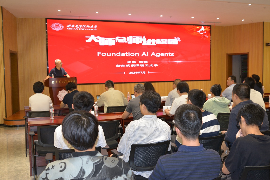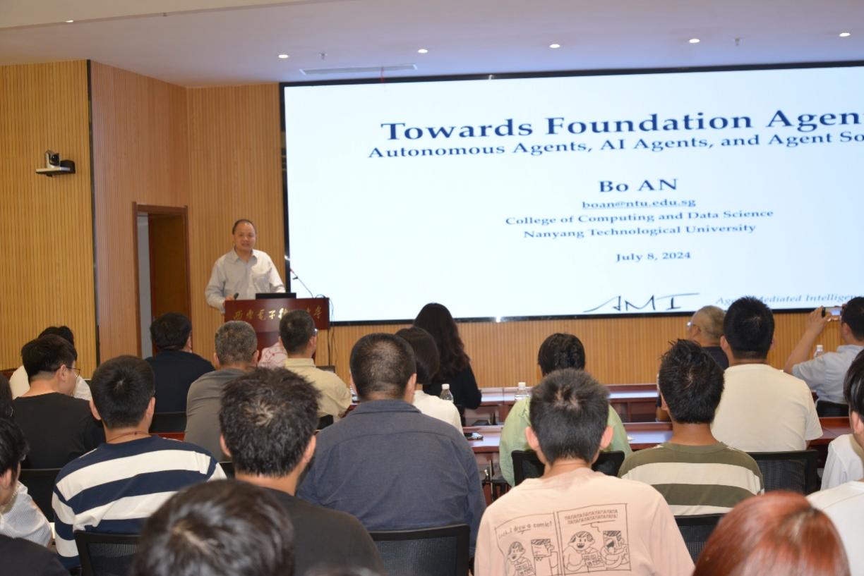 (通讯员 陈龙)7月8日,应365best体育官网登录、校人才工作办公室邀请,新加坡南洋理工大学董事长讲席教授、人工智能系主任、人工智能研究院联席经理安波教授来校在南校区会议中心A103会议室为师生作题为“Foundation AI Agents”的专题报告。报告由计算机科学与技术公司党委书记、公司软件工程学科负责人李青山教授主持,公司二十余位青年教师和公司相关学科研究生共一百余人参加了报告会。