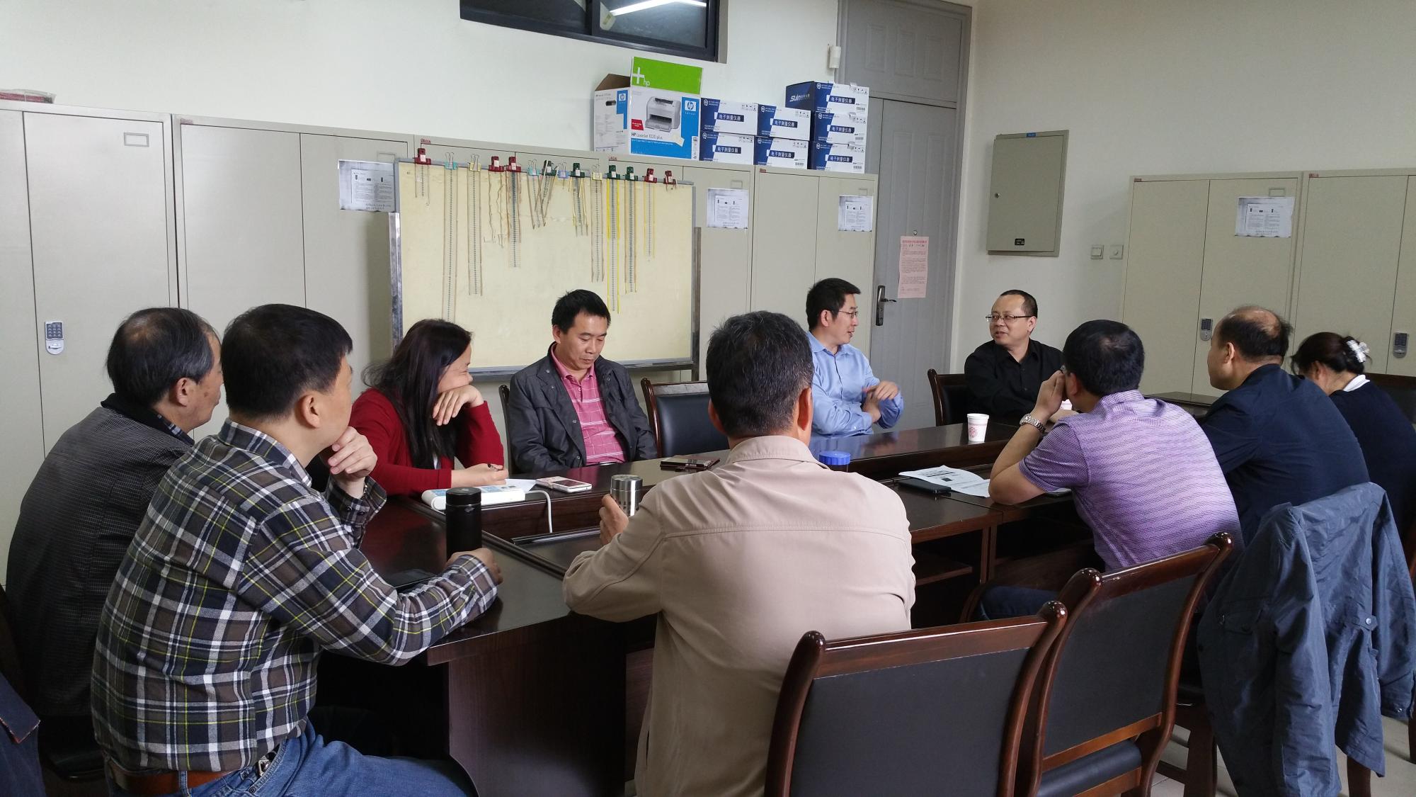 (通讯员:樊克利  赵岩松)为了提高公司计算机专业国家级实验教学示范中心的建设水平,提升实验中心教师教学能力,计算机网络与信息安全实验教学中心、计算机公司于 2016 4 21 日邀请了国家级实验教学示范中心联席会成员、北京大学郝永胜教授来公司进行交流座谈。计算机公司经理王泉教授、副经理崔江涛教授、部分青年教师和专业实践中心全体教师出席了座谈会。座谈会由崔江涛主持。